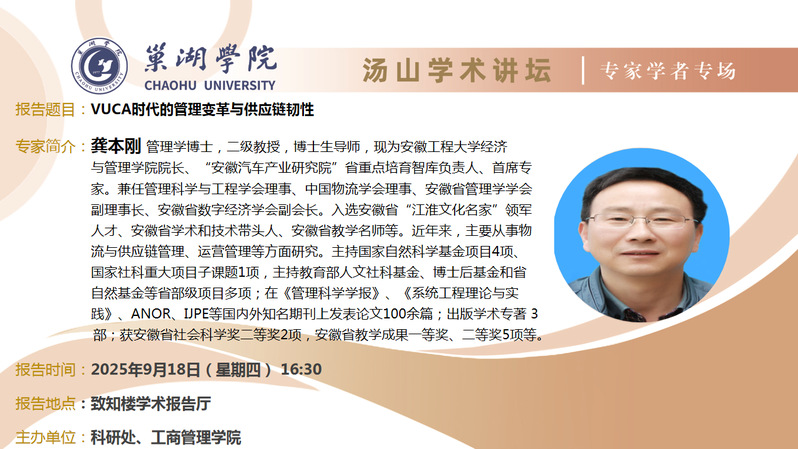• 9月24日:湯山講壇 合肥市經濟社會發展情況專題報告
